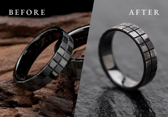 しあわせ指輪工房のブラックリングは、プラチナやK18などの本物の貴金属に、特別なブラックコーティングを施しています。