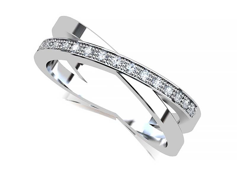 クロスしたリング形状にダイヤモンドを配置した奥様の結婚指輪のイメージCGです。
