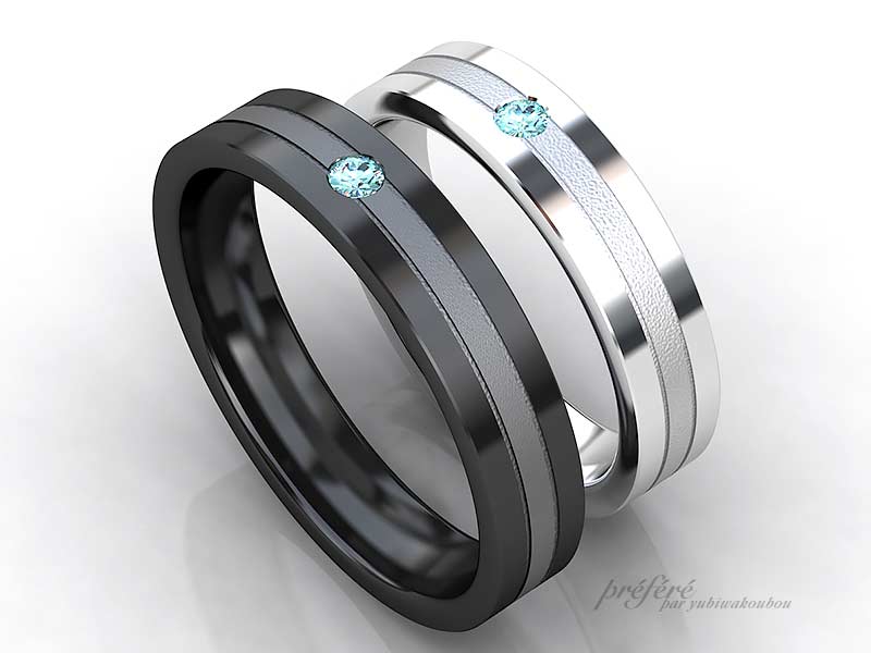 結婚指輪のオーダーはブラックリングにブルーダイヤを留めました