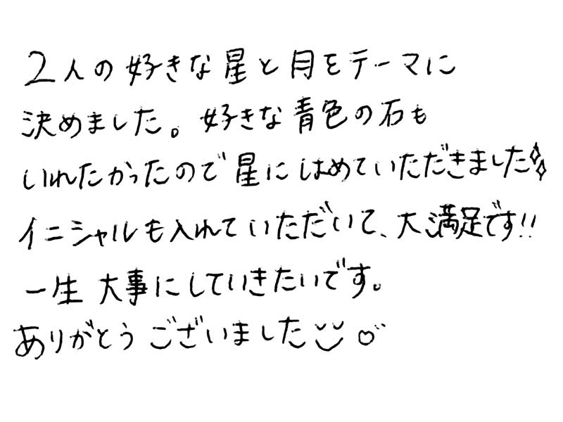 お二人が好きな星☆と月☽モチーフの婚約指輪をお作りしました。