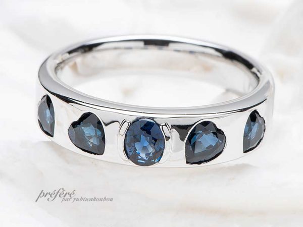 サファイアとダイヤモンドの一文字リングをリフォーム