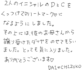 素敵な婚約指輪をお創り頂きましたお二人からのコメント